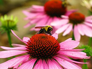 Эхина́цея (лат. Echinacea) — род многолетних травянистых растений из семейства Астровые (лат. Asteraceae) или Сложноцветные (лат. Compositae). Среди многих красивых растений, пришедших к нам с североамериканского континента, эхинацея занимает особое место. В садах Европы она появилась около 300 лет назад[3]. Впервые эхинацею описал английский учёный Джон Клейтон (1686-1773)[4].