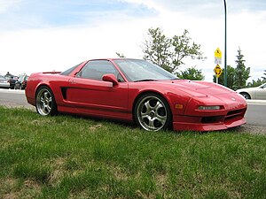 Значимой вехой в истории Acura стал 1990 год, ознаменовавшийся премьерой революционного спортивного купе NS-X (New Sportscar eXperimental). Среднемоторная компоновка в сочетании с атмосферным бензиновым двигателем V6 и задним приводом позволили позиционировать NSX как первый японский автомобиль, способный на равных конкурировать с признанными эталонами класса — Ferrari и Porsche. Разработка NSX продемонстрировала выдающийся конструкторский и технологический потенциал Honda и её подразделения Acura. В частности, именно на NSX дебютировала инновационная система изменения фаз газораспределения и высоты подъёма клапанов VTEC (Variable Valve Timing and Lift Electronic Control). Впервые в мировом автомобилестроении кузов и шасси серийной модели были целиком выполнены из алюминиевых сплавов. При этом NSX отличался относительной простотой повседневной эксплуатации, высочайшим качеством изготовления и надёжностью, нехарактерными для суперкаров рубежа 1980-х и 1990-х годов, благодаря чему заслужил неформальное звание «практичного суперкара на каждый день»[4]. Одновременно с выходом NSX был представлен новый фирменный логотип Acura в виде стилизованного кронциркуля с буквой «A» в центре, призванный подчеркнуть приверженность бренда высочайшим стандартам проектирования и производства автомобилей премиум-класса.