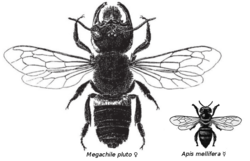 Megachile pluto (мегачи́льный плуто́н) — самый крупный представитель из существующих пчёл семейства Megachilidae. Размер её с большой палец взрослого человека. Челюсти пчелы напоминают ротовой аппарат жука-оленя. Она в четыре раза больше медоносного сородича. Известна под названием гигантская пчела Уоллеса или раджа офу, большая смоляная пчела. Место обитания на Молуккских островах в Индонезии. Отличительной особенностью Megachile pluto является захват жилища древесных термитов вида Microcerotermes amboinensis[1].