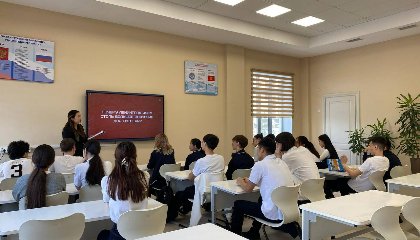 В Таджикистане просветительские лекции прошли в школе в г. Турсунзаде им. Д.И. Менделеева в брендированной аудитории Общества «Знание».
