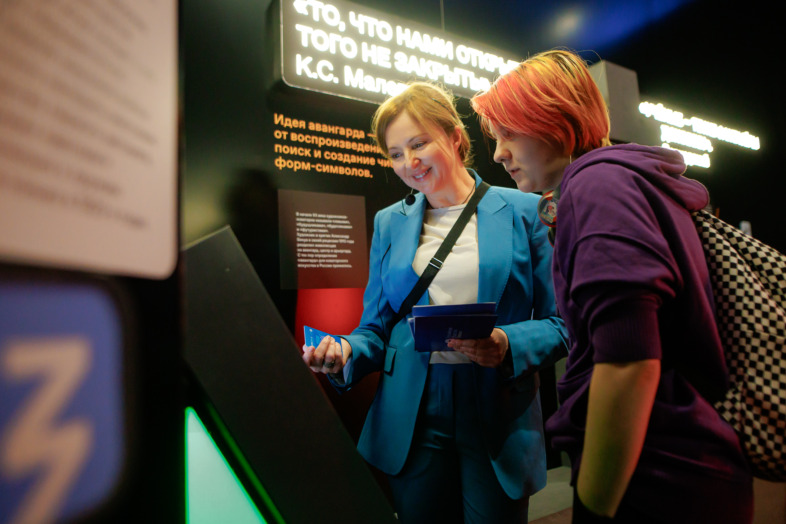 В иммерсивном зале участники прошли квизы и миниигры, следуя индивидуальному маршруту. Здесь они узнали об изобретениях российских ученых, изменивших жизнь человека. Маршрут экскурсантов проанализировали нейросети, и в финале ребята получили необычный сувенир — персональный аватар, сформированный нейросетями. В завершении экскурсии Анна Банщикова провела небольшую викторину о российской науке, рассказала о фотогалерее «Знание.Россия», посвященной достижениям современной России, и интерактивной выставке Минобрнауки России «Десятилетие науки и технологий в России». Фотогалерея и выставка также находятся в павильоне № 57.