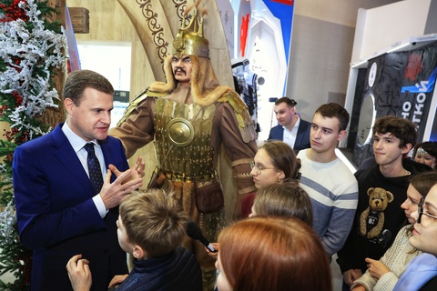 Алексей Чекунков провел гостей Выставки по экспозициям всех дальневосточных регионов и рассказал об особенностях каждого из них. В павильоне Камчатки ребята «телепортировались» на вулкан. Республика Саха (Якутия) привлекла внимание молодежи священным древом жизни «Аал Лук Мас», занимающим ключевое место в якутской мифологии, и виртуальными персонажами из якутских мифов Олонхо. На стенде Магаданской области участникам экскурсии рассказали о рекордах региона в золотодобыче, показали новую красивую набережную – парк «Маяк», созданный по Президентской единой субсидии. Еврейская автономная область представила природные ископаемые, добываемые в регионе, также студенты пообщались с роботом Моней. На стенде Приморского края студенты прошли по иммерсивной «Тропе леопарда». В павильоне Республики Бурятия - совершили виртуальное путешествие по самому глубокому озеру в мире – Байкалу и сыграли в традиционную бурятскую игру «Шагай наадан». На экспозиции Забайкальского края – погрузились в историю региона и посмотрели на себя в образе Чингисхана и буддистского ламы при помощи нейросети. Хабаровский край продемонстрировал свою гордость – современные самолеты: многоцелевой истребитель Су-57, гражданский реактивный самолёт SJ-100, самолёт для региональной авиации «Байкал». Сахалинская область удивила черным магнитным песком, огромным крабом и современным горнолыжным курортом. В «космическом» павильоне Амурской области ребята «запустили» ракету «Ангара» и стали участниками «галактической викторины», поборовшись за экскурсию на космодром «Восточный». Чукотка поразила красотой сопок и нагорий, природным разнообразием арктической тундры и северным сиянием.