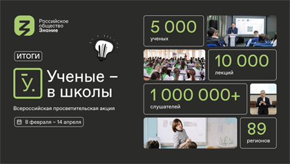 Сегодня в России большое внимание уделяется развитию и популяризации науки. Одна из приоритетных задач — воспитать новое поколение ученых, обеспечить передачу накопленного научного опыта. Общество «Знание» вносит свой вклад в решение этой задачи. В рамках Всероссийской просветительской акции «Ученые — в школы» мы организовали встречи с 5 000 молодых и опытных ученых. Более миллиона школьников и студентов послушали лекции на широкий круг тем. Этим проектом мы выявили стремление современных российских исследователей передавать свои знания и вместе с тем увидели интерес молодого поколения к науке. В центре внимания участников акции были прорывные открытия и разработки и, что важно, карьерные перспективы. Школьники и студенты увидели энергичных, коммуникабельных, увлеченных своим делом ученых. Тех, для кого главное — служить знанию, людям, стране. Убежден, что для молодого поколения деятельность ученых на благо России — вдохновляющий пример, важный ценностный ориентир на жизненном пути,