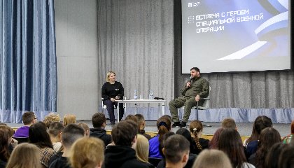 О своей работе в зоне спецоперации студентам Нарьян-Мара рассказал Илья Стахов. По словам бойца, противостояние врагу обострило для него важность таких чувств, как дружба, взаимовыручка, поддержка тех, кто рядом. А справиться с эмоциональным напряжением бойцам помогают животные – наши ребята помогают даже бездомным собакам, которые оказались в зоне боевых действий.