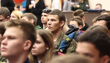 В рамках работы лектория слушатели смогли узнать о профессиональных буднях военных корреспондентов. Военный корреспондент «СоловьевLive», ведущий программы «Башня Мамсурова» Георгий Мамсуров рассказал об особенностях своей профессиональной деятельности, в том числе поделился впечатлениями о четырёхнедельной командировке в приграничные регионы. По словам спикера, в настоящее время профессия военкора стала очень популярна, однако сам он изначально попал на СВО бойцом.