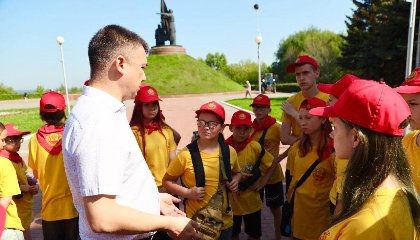 Маршрут начался в Парке Победы, где ребята посетили музей боевой техники под открытым небом. В нем представлено 16 экспонатов, среди которых танки, гаубицы, истребитель и вертолет. Дмитрий Захаров рассказал детям, что сам Парк Победы — знаковое место для горожан и всех жителей республики, ведь в каждой семье есть родственники, которые прошли войну, воевали на фронте, трудились в тылу.