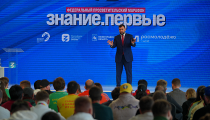 Денис Пушилин встретился с участниками марафона Знание.Первые в павильоне «Нижний Новгород» Города молодежи мира на полях Всемирного фестиваля молодежи в «Сириусе». Во вступительном слове Денис Пушилин рассказал о главных событиях в истории Донбасса, начиная с 2014 года.