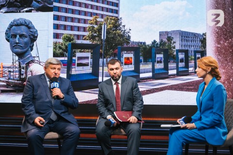 Отдельное внимание гости студии уделили вопросам восстановления памятников в ДНР. Одним из примеров стал мемориальный комплекс «Саур-Могила», который после реставрации получил развитие. В 2023 году к 80-й годовщине освобождения Донбасса от немецко-фашистских захватчиков открыта вторая очередь мемориального комплекса.