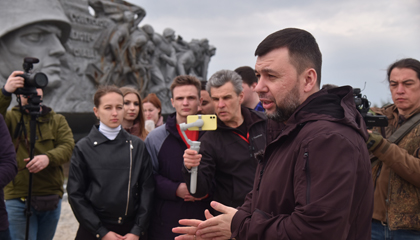Денис Владимирович Пушилин рассказал участникам экскурсии о том, как изменился курган с момента его создания и какую роль он сыграл в разные исторические периоды для жителей ДНР. В 2022 году комплекс был полностью отреставрирован и вновь открыт и доступен для жителей региона.