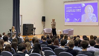 На встрече, прошедшей в Камешкове, ребята побеседовали о литературе как новом культурном тренде с лектором Общества «Знание», актрисой театра и кино, попечителем благотворительного фонда «Старость в радость» Елизаветой Арзамасовой.