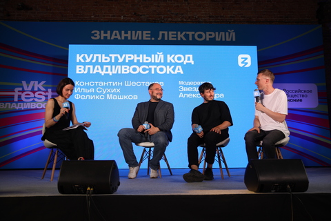В павильоне Знание.Лекторий от Российского общества «Знание» прошла публичная дискуссия «Культурный код Владивостока», участниками которой стали глава краевой столицы Константин Шестаков, создатель одной из самых популярных во Владивостоке сети ресторанов «Супра» Илья Сухих и директор «Конкрит Джангл» Феликс Машков.