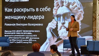 О лидерстве и достижении целей с женщинами побеседовала председатель регионального отделения ОГО «Ассамблея народов России» ДНР, директор ООО «Центр экономического взаимодействия республик», член общественной палаты ДНР Виктория Романюк. Она рассказала, как раскрыть в себе женщину-лидера, как развить соответствующие качества, не утратив свою женственность, помогает ли это качество строить гармоничные отношения, какие качества помогают женщинам сегодня выступать на передовой российского бизнеса и т.д. Эксперт провела интерактив, в рамках которого слушательницы нарисовали свое видение лидера, а в конце лекции обменялись мнениями.