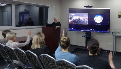 На собрании выступила директор филиала Российского общества «Знание» в Чукотском автономном округе Анастасия Грунина.