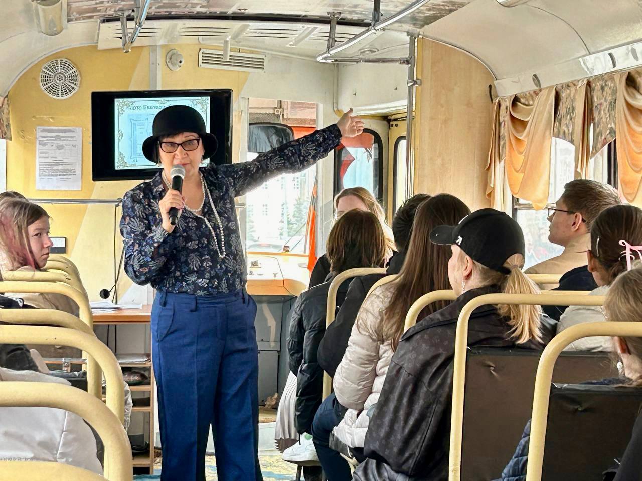По пути следования она рассказала о космонавтах, чьи биографии связаны со Свердловской областью: современнике Сергее Прокопьеве, а также командире корабля «Восход-2» Павле Беляеве. Кроме этого, учащиеся узнали о расположенных в столице Среднего Урала предприятиях и научно-исследовательских институтах, работающих в сфере освоения космического пространства и строительства орбитальных кораблей. Ребятам продемонстрировали образцы уральских горных пород, имеющих практическое применение в металлургии и точном приборостроении.