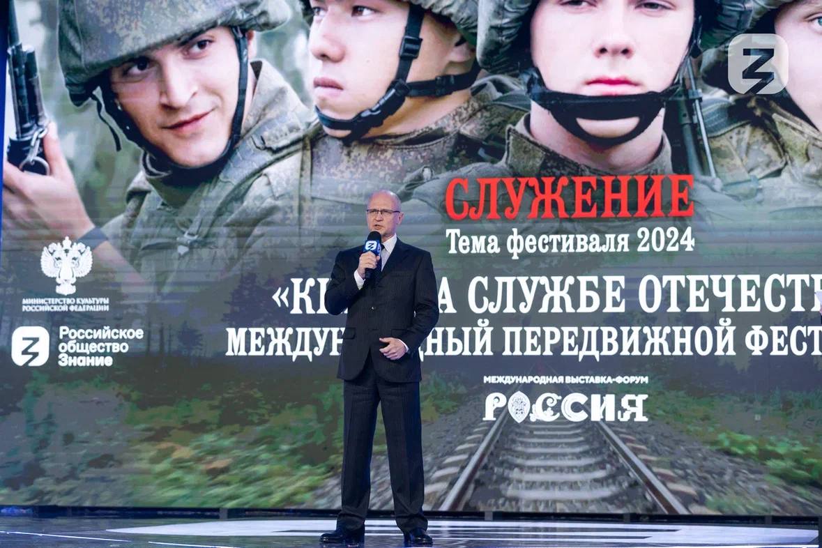 Первый заместитель Руководителя Администрации Президента Сергей Кириенко поздравил всех со стартом Международного передвижного фестиваля документальных патриотических фильмов «Кино на службе Отечеству», который организован по поручению Президента России Владимира Путина. С этого года Фестиваль стал международным, и вместе с режиссерами из 30 регионов нашей страны участвуют еще и режиссёры из Республики Сербской, Ирана, Ливана. Фестиваль проходит в Москве в рамках образовательной программы Выставки «Россия».