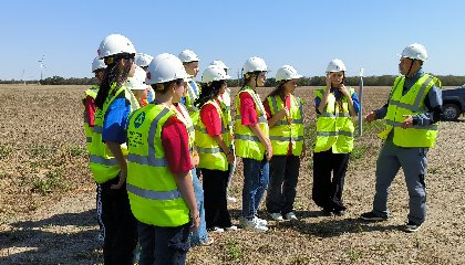 Затем экскурсия продолжилась на территории Труновской ВЭС. Её строительство началось в 2022 году, в 2024 году была сдана вторая очередь. На Труновской ВЭС находится 38 ветроустановок мощностью по 2,5 МВт каждая. Установки работают без выбросов углекислого газа в атмосферу, а полученного электричества хватает, чтобы обеспечить 40 тыс. домохозяйств.