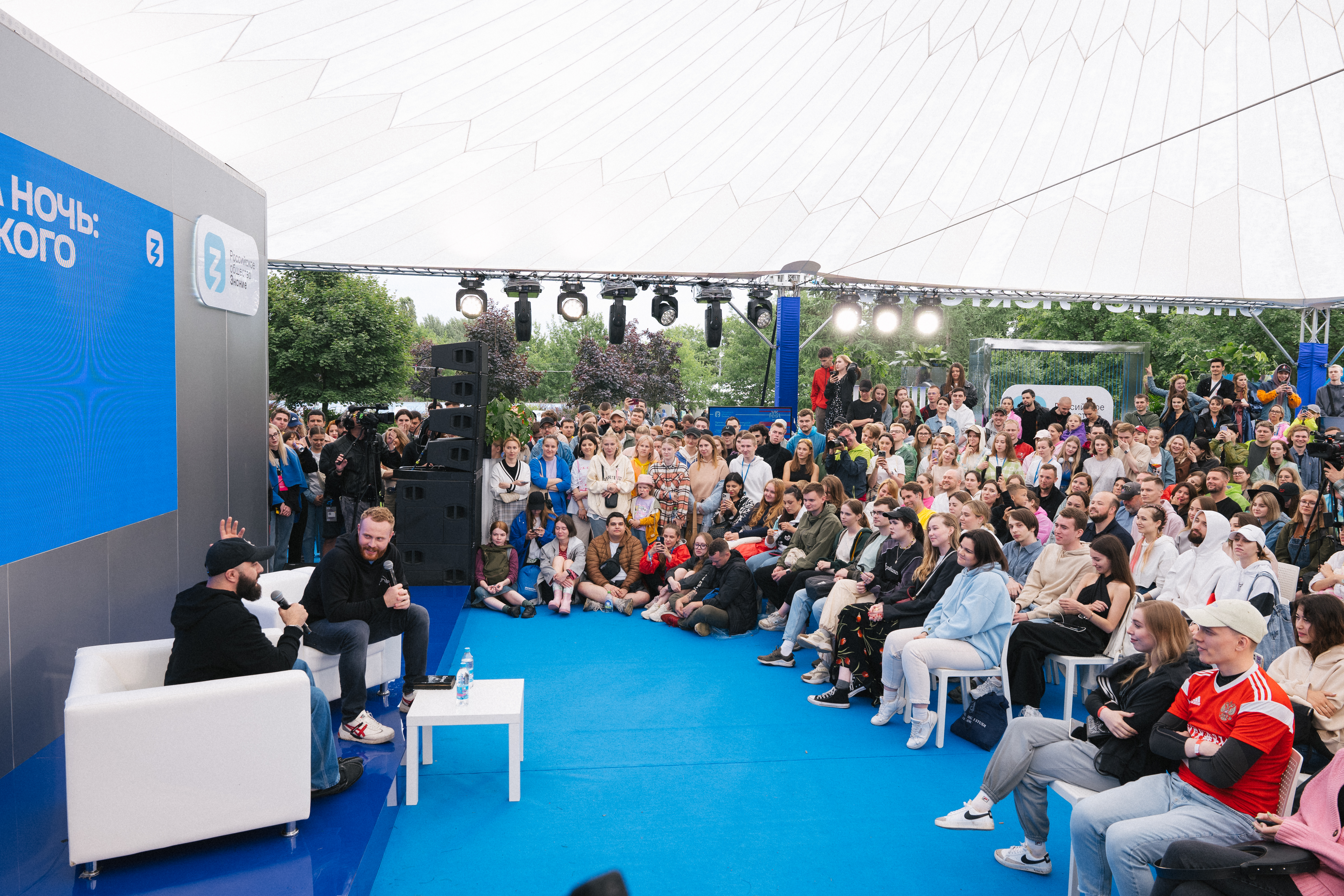 Ярким завершением работы площадки Знание.Лекторий стала презентация стендап-проекта «История на ночь: мемы русского интернета» от комиков Евгения Чебаткова и Расула Чабдарова и откровенное выступление комика Ивана Абрамова про юмор в России.