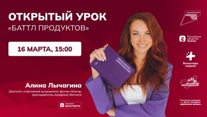 с Российским обществом «Знание» и Всероссийским общественным движением «Волонтеры-медики» организует открытый урок об ответственном отношении к рациону питания для школьников.
