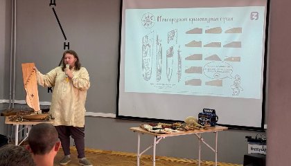 Творческое путешествие во времени для ребят провел хранитель народных традиций, известный в Новгороде музыкант Антон Вакуров. От гуслей до лиры – в живом исполнении для ребят прозвучали более 20 инструментов.