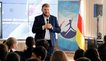 Учитель физики школы № 108 им. Ю. В. Андропова города Моздока Марат Дряев выступил с лекцией о познании мира через теоретическую физику. Лектор рассказал ребятам о том, какими данными учёные смогли изучить устройство Вселенной и её развитие.