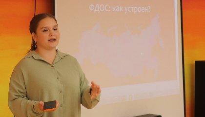 Активист федерального и республиканского детских общественных советов Юлия Ксенофонтова выступила перед участниками смены с темой «Семья федерального детского общественного совета: твоя возможность найти 'своих».