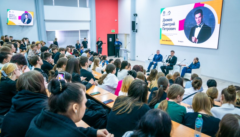 На площадке Югорского государственного университета в столице Югры лектор Общества «Знание», известный актер театра и кино Дмитрий Дюжев встретился с молодежью и иностранными делегатами Всемирного фестиваля молодежи. Он провел потрясающую мотивационную лекцию для ребят, которая переросла в открытый диалог про культуру, ценности, таланты и реализацию своего творческого потенциала. Многие участники встречи впервые смогли вживую познакомиться с Дмитрием Дюжевым, уходя, улыбались и говорили шепотом, что это было даже лучше, чем посетить крутой спектакль с его участием!