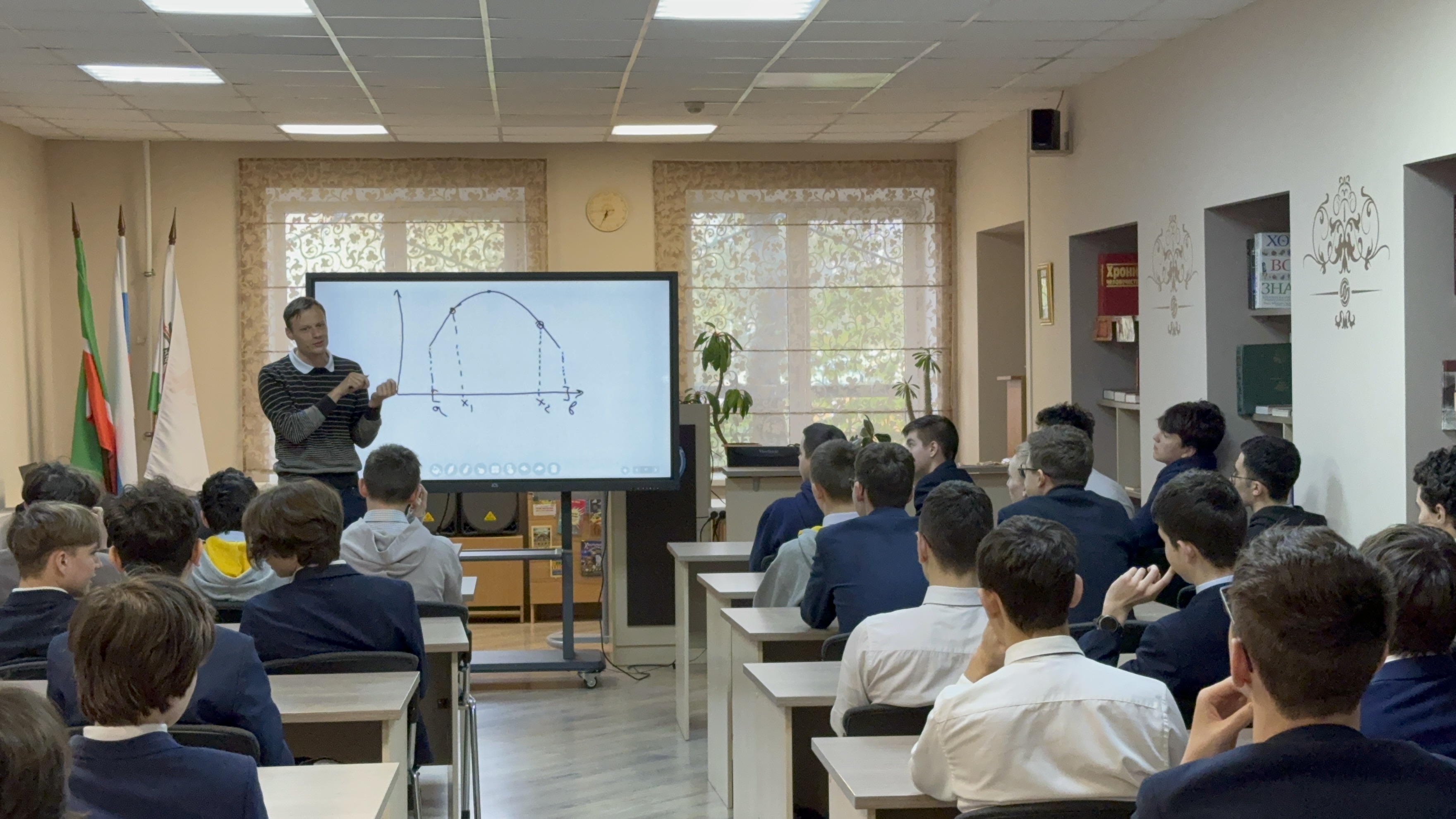 Занятие для учеников лицея №2 Казани ректор университета Иннополис Александр Гасников провел в рамках трека Знание.Лекторий. Встречу организовал филиал Российского общества «Знание» в Республике Татарстан, который с начала года провел около 450 мероприятий с ведущими спикерами региона, в том числе из сферы науки и технологий.