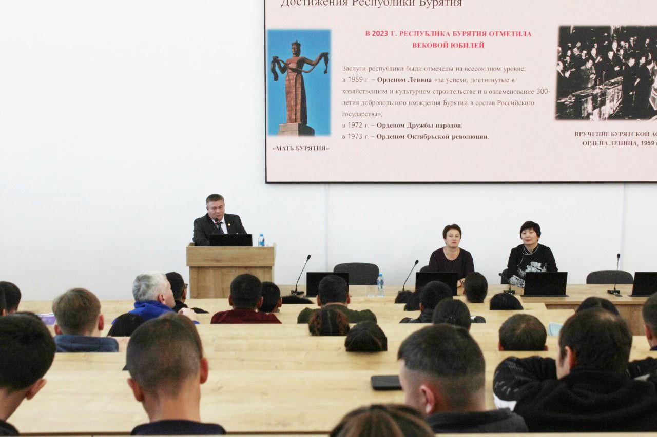 Александр Карначёв выступил в роли лектора акции «Достижения России» и рассказал молодым слушателям о главных достижениях Республики Бурятия в области промышленности, сельского хозяйства, образования, спорта, культуры, туризма.
