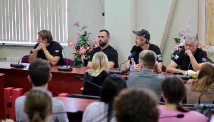 Богдан Булычев не только рассказал первокурсникам о проекте, но и пообщался с ними о туристическом потенциале страны, поделился практическими кейсами, которые помогут ребятам найти себя в одном из направлений — этно-туризме, туризме в городах и на предприятиях. «Эта сфера у нас развивается семимильными шагами, но не хватает сервиса. И мы сейчас как раз встречаемся с ребятами, которые должны отвечать за него. Поэтому задача наша — замотивировать ребят понять, что это крайне важный аспект, а они — это будущее туристической отрасли всей нашей страны, и в частности, Донбасса», — отметил лектор. Кроме того, с ребятами пообщались члены команды Богдана Булычева — Андрей Корх, Олег Харченко, Заур Исмаилов и Стефан Леканю.