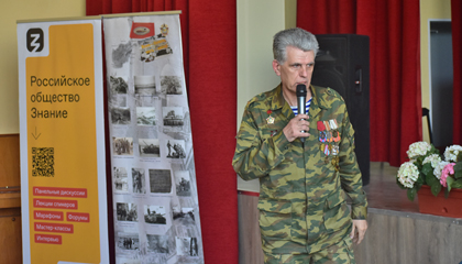 На площадках акции Знание.Герои молодежь получила возможность пообщаться с людьми, которые служат примерами современного героизма. Часто эти люди живут совсем рядом. Спикером акции в Гатчине выступил Александр Давыдов. Имя Александра Николаевича в городе хорошо известно: под его руководством воины-афганцы организуют памятные мероприятия и проводят уроки мужества в образовательных учреждениях города и района. Указом Президента Российской Федерации от 3 июля 2019 года за заслуги в развитии ветеранского движения и активное участие в военно-патриотическом воспитании молодежи Александр Давыдов был награжден медалью ордена «За заслуги перед Отечеством» II степени.