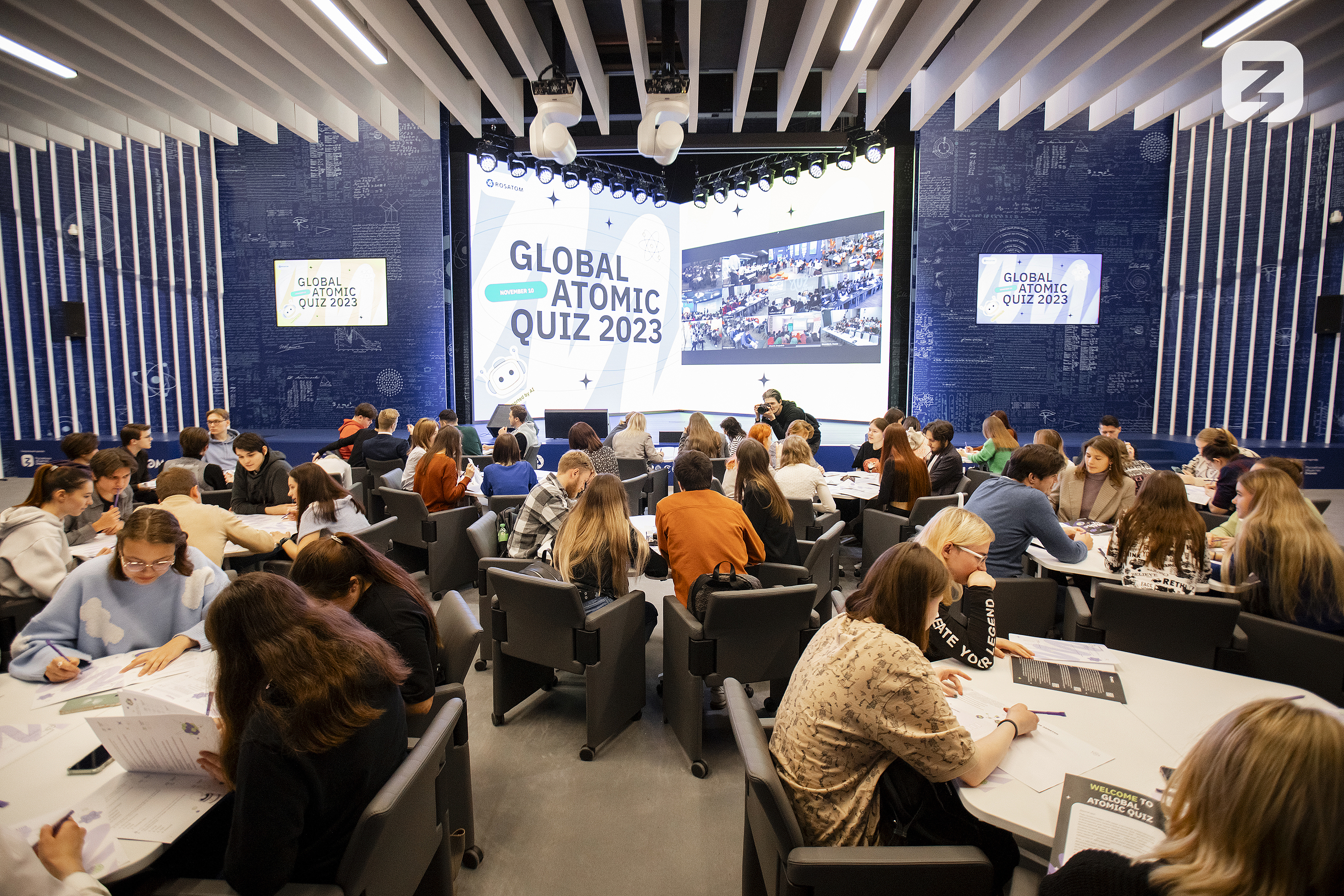 В павильоне № 19 «АТОМ» отмечали ежегодный праздник — Всемирный день науки за мир и развитие, который приходится на 10 ноября. Сначала массу позитивной энергии подарила молодежи командная игра Global Atomic Quiz 2023 — это квиз от Росатома, который дает возможность объединиться в команды и посоревноваться с искусственным интеллектом, чтобы пополнить багаж знаний об атомной науке и технологиях, прокачать логику, эрудицию, сообразительность.