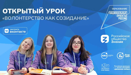 Открытый урок о волонтестве можно будет посмотреть онлайн в прямом эфире, трансляция будет доступна в официальных сообществах Российского общества «Знание», «Национальные проекты России» в VK.