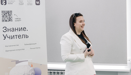 Актуальную тему — «Личный бренд преподавателя» — раскрыла учитель высшей квалификационной категории, почетный наставник Хабаровского края, победитель конкурса «Учитель года Хабаровского края — 2023» в номинации «Цифровой учитель», победитель конкурса «Земский учитель» Юлия Тетерко. Из выступления опытного учителя студенты узнали о личном бренде как помощнике педагога в жизни и профессии, об основных инструментах по его созданию и продвижению. В рамках мастер-класса студенты практиковались в создании личного бренда и написании стратегии его развития.