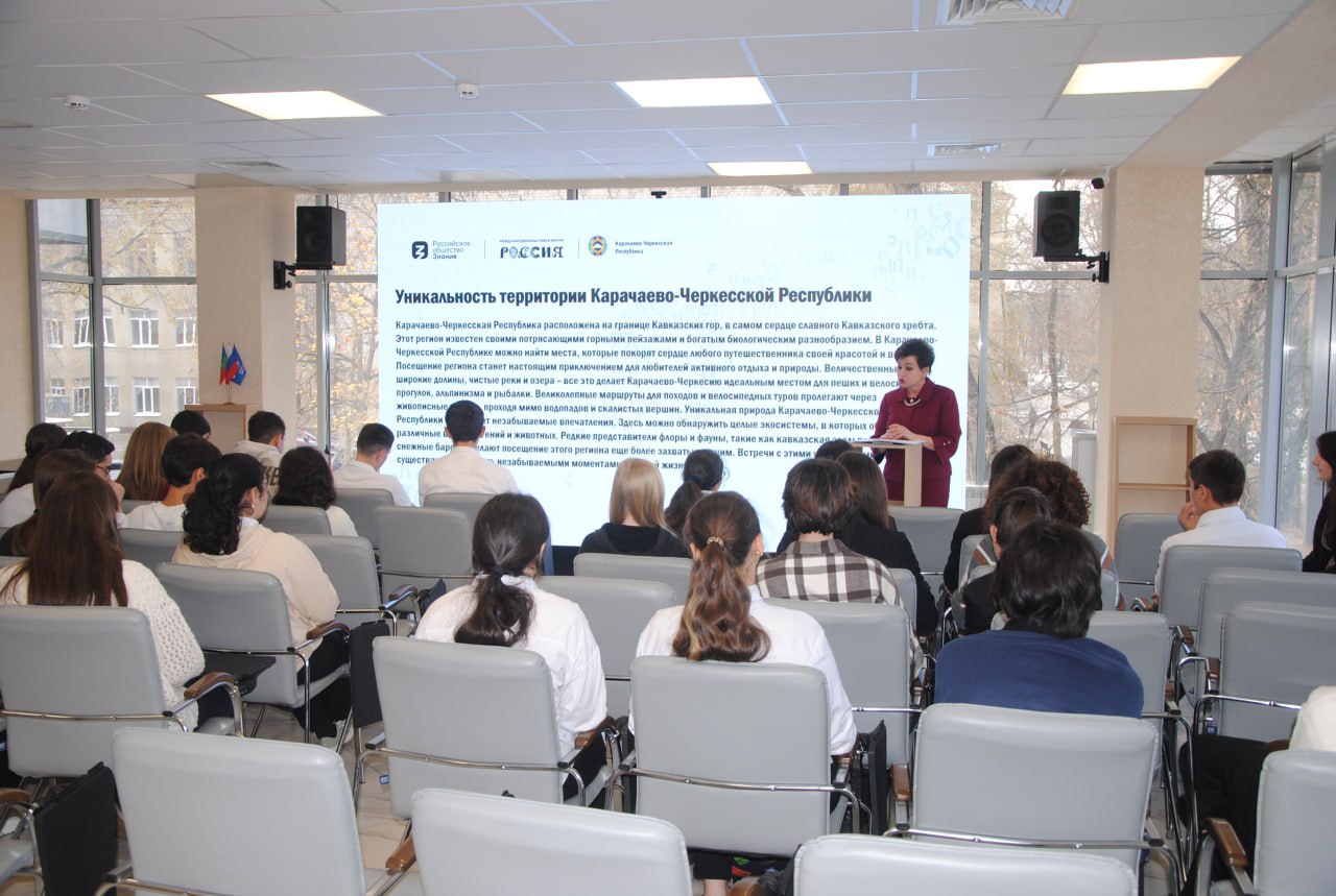 В роли лектора акции «Достижения России» выступила директор Лицея № 1 г. Усть-Джегуты, депутат Народного Собрания Карачаево-Черкесской Республики, региональный координатор партийного проекта «Новая школа» Татьяна Черняева, она рассказала молодым слушателям о главных достижениях Карачаево-Черкесской Республики.