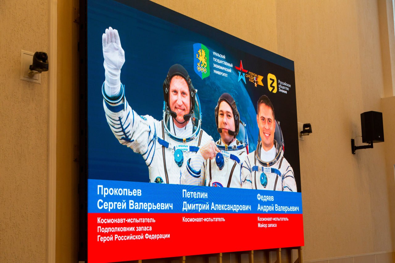 Мероприятие такого плана дает возможность встретиться и поговорить с уникальными людьми. Впервые за всю историю освоения космоса российский экипаж состоял из уральцев, наших земляков. А благодаря Сергею Валерьевичу Прокопьеву в невесомости побывал флаг УрГЭУ. Теперь он хранится в нашем музее,