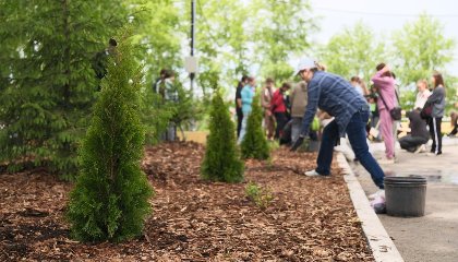 Традиция высаживать на территории школы хвойные деревья появилась несколько лет назад. Первыми стали голубые ели, затем обычные, а теперь перед главным входом в здание появились туи. Спиреи, гортензии и жасмины тоже выбрали неслучайно: они активно используются при озеленении города, привычны к местному климату,