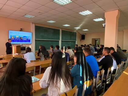 Остап Чооду рассказал студентам о выставке-форуме “Россия” в Москве, о культурной, образовательной и деловой программах, реализующихся в рамках неё. Лектор поговорил со студентами о материальном и нематериальном культурном наследии республики, ведь Тува является прародиной многих кочевых культур, в том числе скифской и древнетюркской.
