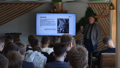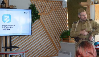 Лектор Российского общества «Знание», доктор исторических наук, доцент Школы искусств и гуманитарных наук Дальневосточного федерального университета, реконструктор Вадим Агапов прочитал лекцию на тему «Советский солдат Второй мировой войны» и показал детям настоящие артефакты того времени.