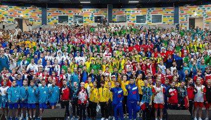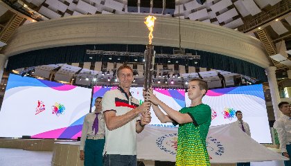 После активной разминки участники Всероссийского этапа президентских состязаний школьников пообщались с олимпийским чемпионом и узнали, как начиналась карьера именитого спортсмена, кто привел его в спорт и поддерживал в трудные минуты.