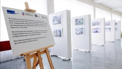 Новая фотовыставка Общества «Знание» и ТАСС рассказывает о жизни на освобожденных территориях и том, как там сейчас развивается экономика, инфраструктура и социальная сфера. Выставку можно увидеть в Национальном исследовательскоя ядерном университет «МИФИ», Российском государственном аграрном университете – МСХА имени К. А. Тимирязева, Российском государственном университете имени А. Н. Косыгина, Московском политехническом университете, Российском химико-технологическом университете имени Д.И. Менделеева и в Университете науки и технологий МИСИС.