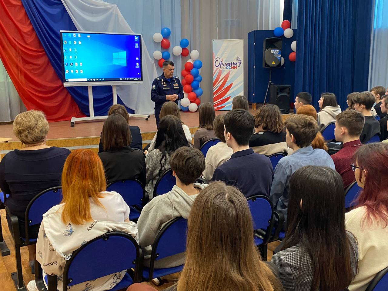 Почётные гости рассказали школьникам о ратных подвигах и победах русской армии, совершив экскурс в глубину веков, показали суть исторической миссии России в мире и ее воинских традиций. Особенно ребят заинтересовали личные истории из жизни героев, связанные со службой, выбором профессии, случаи, влияющие на становление боевого характера людей.