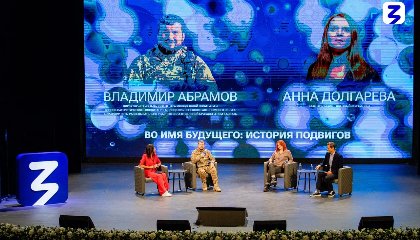Военного корреспондента RT, автора патриотических стихов Анну Долгарёву и ветерана специальной военной операции Владимира Абрамова ребята встретили громкими аплодисментами. Свое общение с молодежью Анна Долгарёва начала с размышления о силе слова, которое способно лучше всего запечатлеть правду и сохранить ее для потомков.