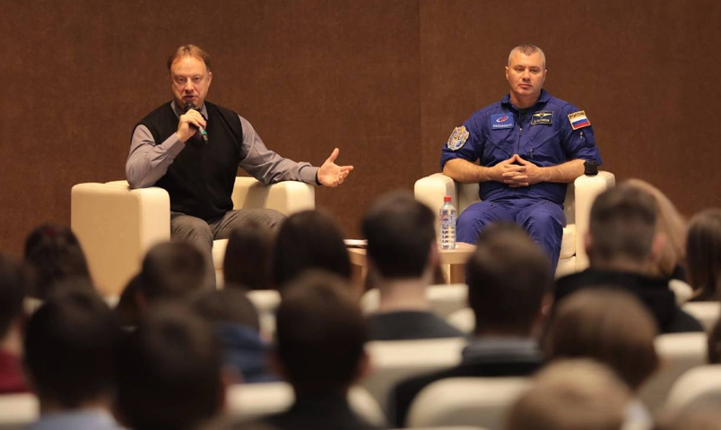 После просмотра фильма молодые люди обсудили его с космонавтом-испытателем отряда космонавтов Роскосмоса Денисом Матвеевым. Он также рассказал участникам эстафеты, как пришел в профессию, какие знания, умения требуются на МКС и дал рекомендации тем, кто хочет строить карьеру в ракетно-космической отрасли.