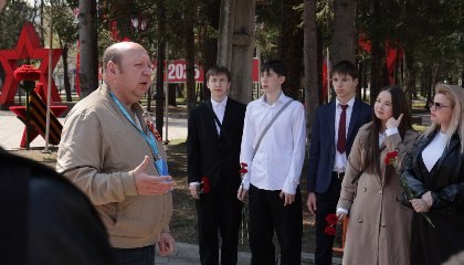 Это мероприятие стало специальным форматом марафона Знание.Первые, который посвящен 80-летию Победы. Экскурсия началась от Памятного камня, прошла через Аллею героев, где ребята познакомились с Героями Советского Союза, полными кавалерами ордена Славы, Героями России и завершилась у Вечного огня, где участники мероприятия возложили цветы.