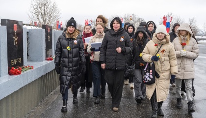 Первой точкой маршрута стал мемориал «Защитникам Советского Заполярья в годы Великой Отечественной войны». Студенты возложили цветы к подножию «Алеши» в знак глубокой благодарности и признательности героям, отстоявшим свободу нашей Родины.