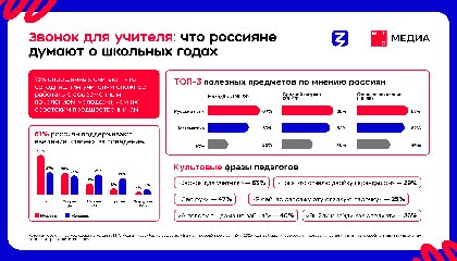 Россияне до сих пор вспоминают культовые фразы педагогов – «Звонок для учителя» (63%), «А голову ты дома не забыл?» (40%), «Лес рук» (47%), «Выйди и зайди как следует» (26%), «Я сейчас рассажу эту сладкую парочку» (25%) и «Пока что ставлю двойку карандашом» (29%).